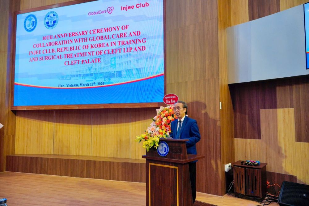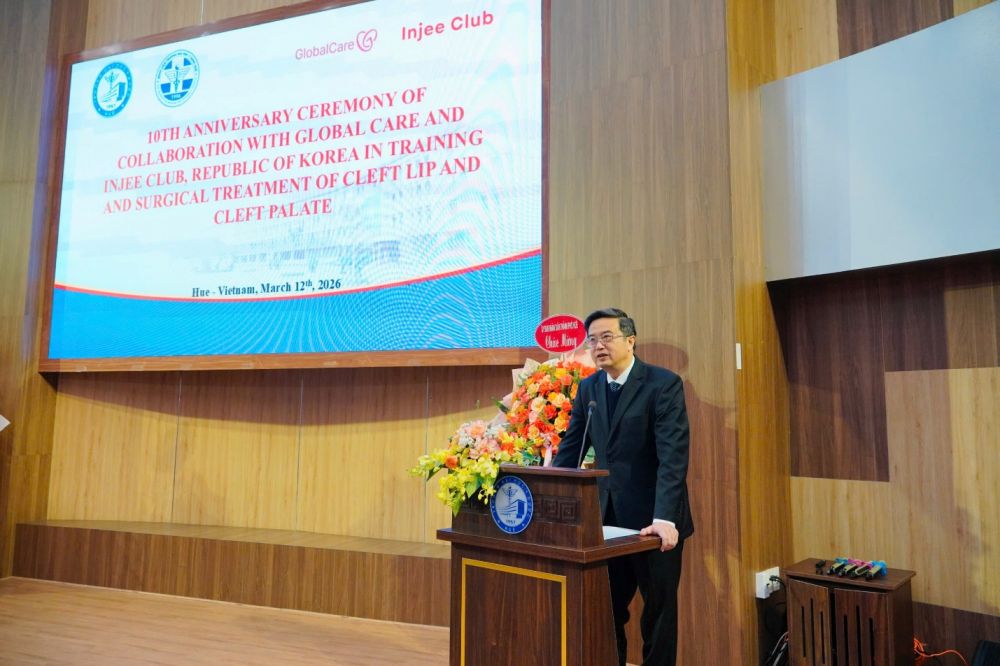 Phát biểu chào mừng, GS.TS. Nguyễn Vũ Quốc Huy – Hiệu trưởng Trường Đại học Y - Dược, Đại học Huế nhấn mạnh rằng trong suốt 10 năm qua, mối quan hệ hợp tác giữa Nhà trường, Bệnh viện Trường và Tổ chức Global Care và Injee Club đã mang lại nhiều kết quả thiết thực trong đào tạo nguồn nhân lực y tế, trao đổi học thuật, chuyển giao kỹ thuật và triển khai các chương trình phẫu thuật nhân đạo cho bệnh nhân có hoàn cảnh khó khăn.