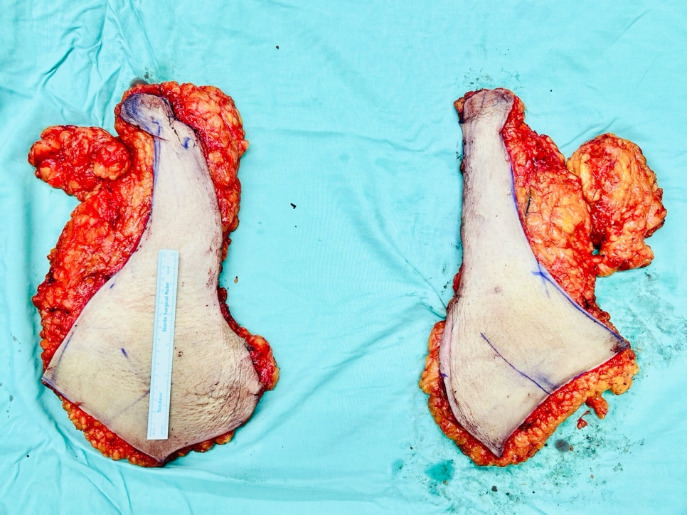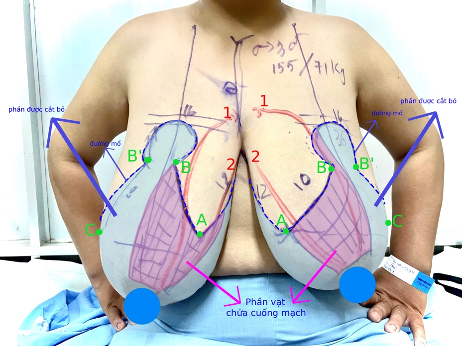 Ca mổ được thực hiện với trưởng kíp Tạo hình vi phẫu và thẩm mỹ TS. BS Lê Hồng Phúc, cùng ekip GMHS, GPB và sự hỗ trợ của ekip CĐHA. Mục đích thu gọn vú , bảo tồn quầng núm vú 2 bên. Bao gồm các giai đoạn: