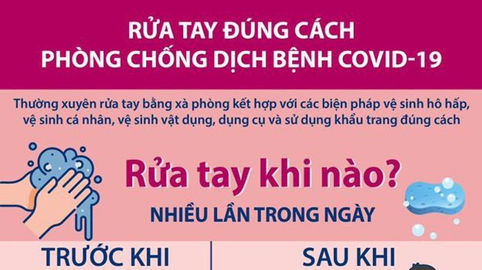 Trong những khuyến cáo của Bộ Y tế về các biện pháp phòng chống lây nhiễm bệnh COVID-19, ngoài hạn chế tiếp xúc, đeo khẩu trang đúng cách thì rửa tay đúng...