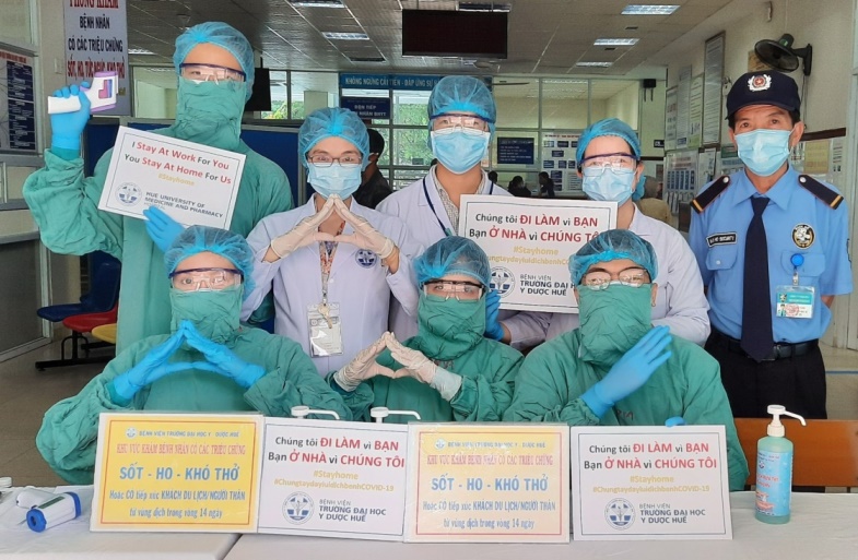 Thực hiện Thông báo số 253/TB-VPCP ngày 26/7/2020 của Văn phòng Chính phủ về Kết luận của Thủ tường Chính phủ Nguyễn Xuân Phúc tại cuộc họp Thường trực Chính phủ về phòng chống COVID- 19; Công văn số 6568/UBND-VH ngày 26/7/2020 của Chủ tịch UBND tỉnh Thừa Thiên Huế về việc tiếp tục thực hiện các biện pháp sẵn sàng phòng, chống COVID-19; Công văn số 2006/SYT-NVY ngày 24/7/2020 của Sở Y tế TT Huế về tăng cường công tác điều tra, giám sát, phát hiện và xử lý dịch bệnh COVID-19; Bệnh viện Trường Đại học Y Dược Huế đã chủ động trong công tác phòng chống dịch bệnh COVID- 19 với các hoạt động đồng bộ như: Tăng cường khám sàng lọc, đón tiếp - phân luồng người bệnh, người nhà đến bệnh viện, kích hoạt lại các đội phản ứng nhanh... Tất cả bệnh nhân vào Bệnh viện đều được phân luồng và sàng lọc: Xuất trình chứng minh nhân dân, đo nhiệt độ, khai báo y tế, khai thác yếu tố dịch tễ, triệu chứng lâm sàng,... và được hướng dẫn biện pháp chủ động phòng chống dịch: Mang khẩu trang, sát khuẩn tay nhanh,... ngay từ ngày đầu khởi phát dịch bệnh trở lại. Những bệnh nhân đến từ vùng dịch, có nguy cơ đều được chuyển ngay đến phòng khám sàng lọc. Bệnh nhân đã sàng lọc và xác định không có yếu tố nguy cơ sẽ được đeo vòng tay màu trắng (bệnh nhân và người nhà ngoại trú) hoặc màu hồng (bệnh nhân và người nhà nội trú) để nhận diện các trường hợp đã qua sàng lọc tại Bệnh viện.