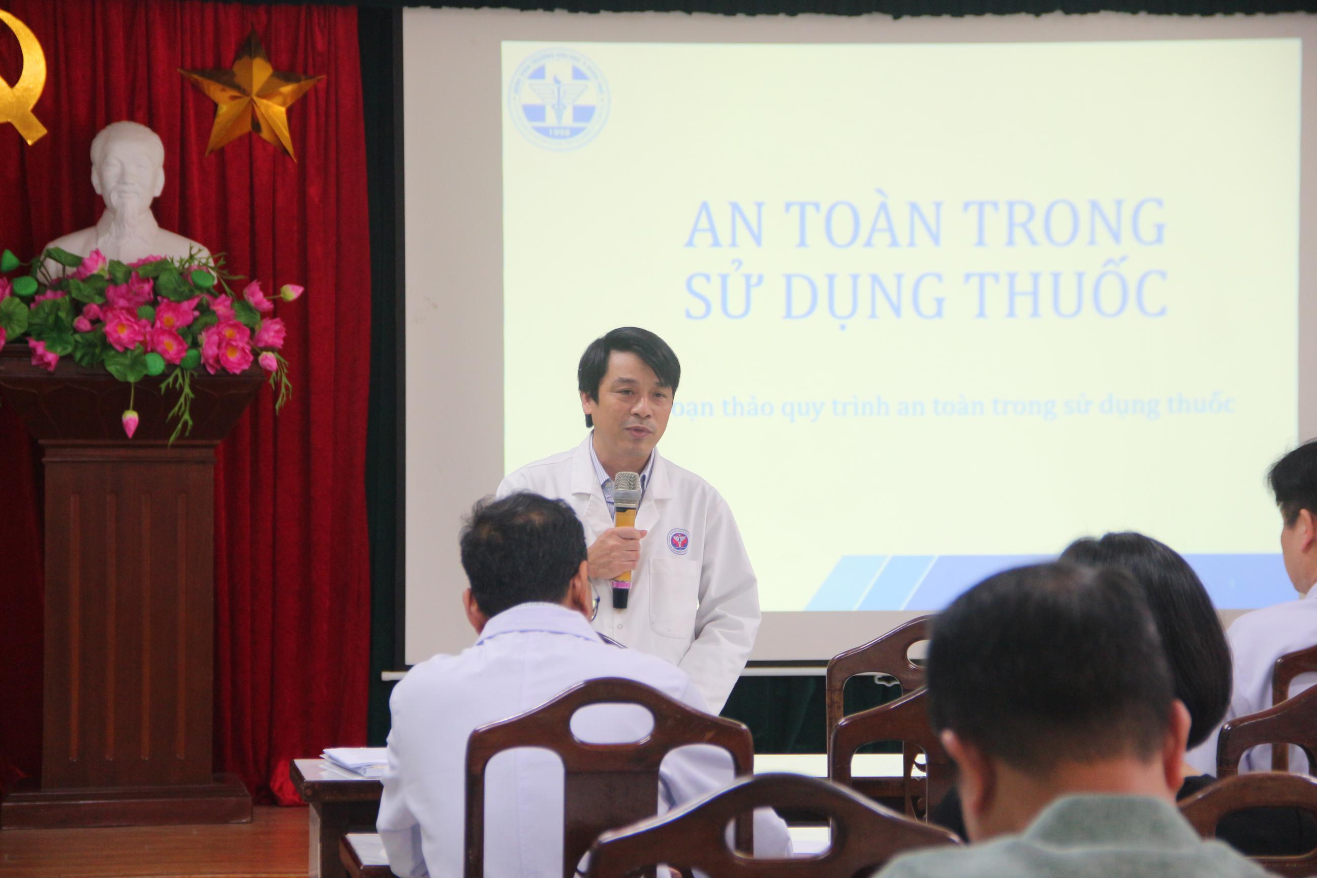 Buổi họp có sự tham dự của Ban Giám đốc; Ban chủ nhiệm và Điều dưỡng trưởng của các Khoa phòng, Trung tâm, Đơn vị; Lãnh đạo các Phòng chức năng của Bệnh viện. Phát biểu tại buổi họp, PGS.TS. Lê Nghi Thành Nhân – Phó Giám đốc Bệnh viện nhấn mạnh tính cấp thiết của vấn đề và khẳng định “An toàn trong sử dụng thuốc” là một trong những nội dung trọng tâm của hoạt động “An toàn người bệnh” tại bệnh viện. Việc xây dựng một hệ thống quy trình rõ ràng sẽ giúp giảm thiểu các sai sót liên quan đến thuốc có thể ảnh hưởng đến sức khỏe người bệnh. Bên cạnh đó, Ban soạn thảo Quy trình An toàn trong sử dụng thuốc đã giới thiệu các giải pháp ứng dụng công nghệ thông tin để nâng cao an toàn trong sử dụng thuốc như xây dựng bộ công cụ cảnh báo tiền sử dị ứng của người bệnh; cảnh báo tương tác thuốc - thuốc, thuốc – tuổi, thuốc – bệnh, tương kỵ tiêm truyền; giám sát sử dụng kháng sinh ưu tiên quản lý; quản lý các thuốc thuộc danh mục LASA; xây dựng phác đồ điều trị; …
