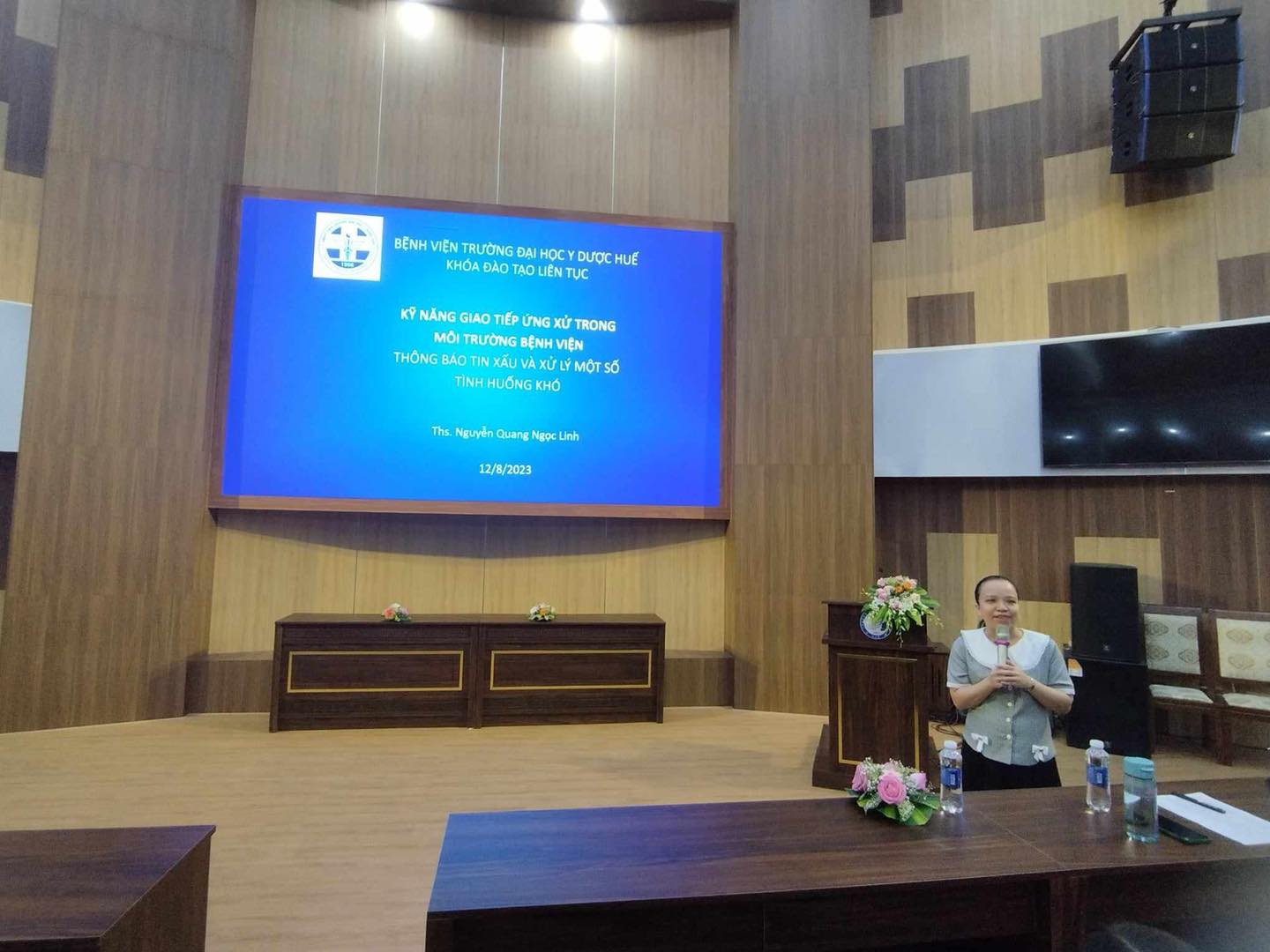 Kỹ năng giao tiếp ứng xử là một trong những kỹ năng mềm quan trọng, giúp cho người Điều dưỡng, Hộ sinh, Kỹ thuật y thực hiện tốt hơn công việc của mình. Làm thế nào để tăng hiệu quả kỹ năng giao tiếp, kỹ năng thấu hiểu, lắng nghe tích cực và phản hồi hiệu quả để giúp người bệnh nhận biết được sự quan tâm, thông cảm và đón nhận các thông tin một cách thoải mái mà không bị thêm tổn thương đau đớn, nhân viên y tế sẽ giải quyết tốt hơn các tình huống trong công việc. Cũng trong buổi học này, các học viên cũng được giảng viên hướng dẫn cách nhận biết và quản lý cảm xúc căng thẳng trong công việc cũng như trong cuộc sống.
