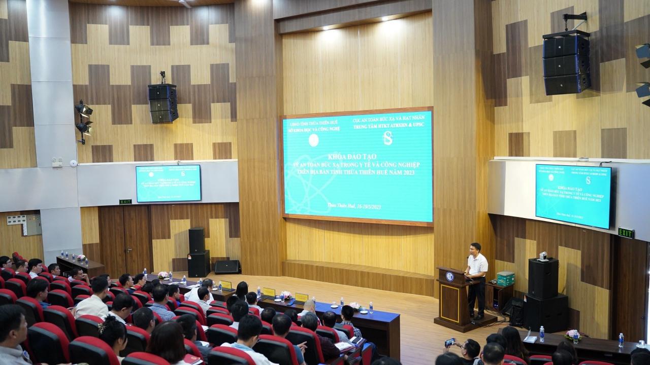 Tham dự khai mạc khoá đào tạo có Ông Tào Xuân Khánh, Phó Giám đốc Trung tâm Hỗ trợ Kỹ thuật An toàn bức xạ hạt nhân và Ứng phó sự cố - Cục ATBX& Hạt nhân – là đơn vị phụ trách công tác giảng dạy và cấp Giấy chứng nhận cho khoá đào tạo. Bà Trần Thị Thuỳ Yên, Phó Giám đốc sở Khoa học và Công nghệ Tỉnh Thừa Thiên Huế. Ông Nguyễn Khoa Hùng, Giám đốc Bệnh viện Trường Đại học Y - Dược Huế cùng 150 học viên là lãnh đạo quản lý cơ sở, người phụ trách an toàn và nhân viên bức xạ của các cơ sở tiến hành công việc bức xạ sử dụng thiết bị bức xạ trong X-quang y tế, công nghiệp, y học hạt nhân, xạ trị, quan trắc môi trường, hoạt động dịch vụ năng lượng nguyên tử trên địa bàn tỉnh.