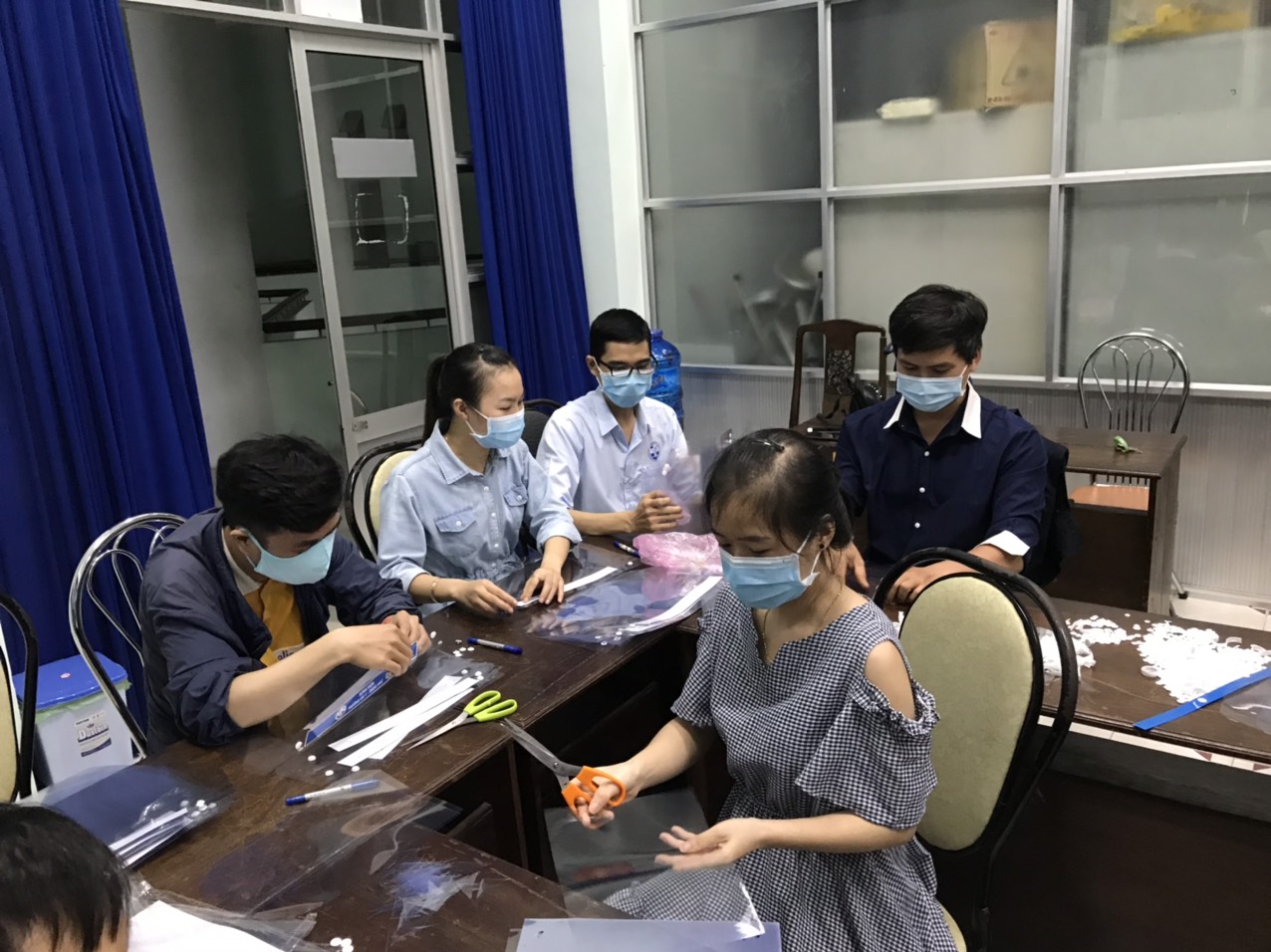 Được sự chỉ đạo của Ban Giám đốc Bệnh viện, Ban chấp hành Liên chi đoàn Bệnh viện đã triển khai đợt ra quân làm kính chắn phòng hộ cho cán bộ y tế tại Bệnh viện, đặc biệt là cán bộ làm công tác chuyên môn trực tiếp tiếp xúc với người bệnh. Để ứng phó lâu dài với dịch, Liên chi đoàn cũng đã huy động sức mạnh của toàn thể đoàn viên thanh niên quyết tâm hoàn thành tổng cộng 700 tấm kính chắn giọt bắn nhằm đảm bảo cơ số cần thiết cho công tác phòng chống dịch trong thời gian 10 ngày. Trong ba tuần vừa qua, đại diện Liên chi đoàn Bệnh viện đã trực tiếp trao tặng hơn 500 tấm kính chắn cho các anh chị em phòng khám, phòng tài chính kế toán. Sau đó, Liên chi đoàn cũng đã nhanh chóng trao tặng đến cán bộ tại các Phòng khám, Trung tâm cấp cứu và đột quỵ, Khoa Xét nghiệm, bộ phận phân luồng, khám sàng lọc và các Khoa phòng, Trung tâm, Đơn vị tại Bệnh viên.