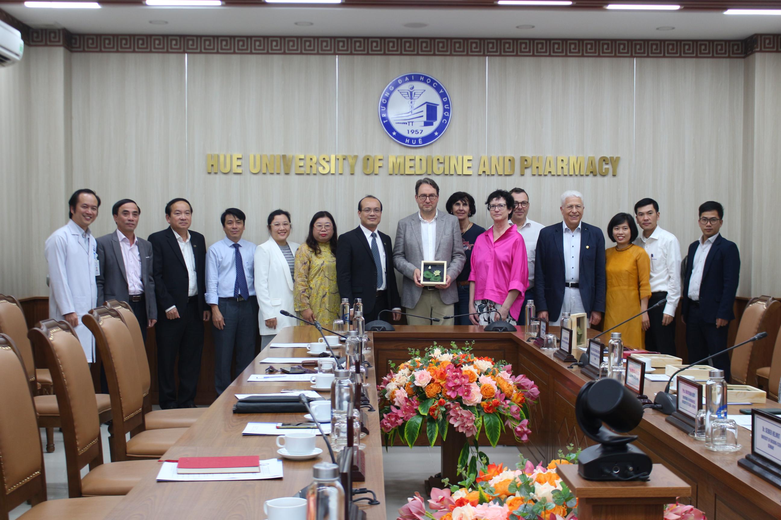 (TTH) Chiều 6/3, Trường đại học (ĐH) Y - Dược, ĐH Huế và Bệnh viện Trường tổ chức đón tiếp và làm việc với đoàn chuyên gia đến từ Tổ chức DEVIEMED -...
