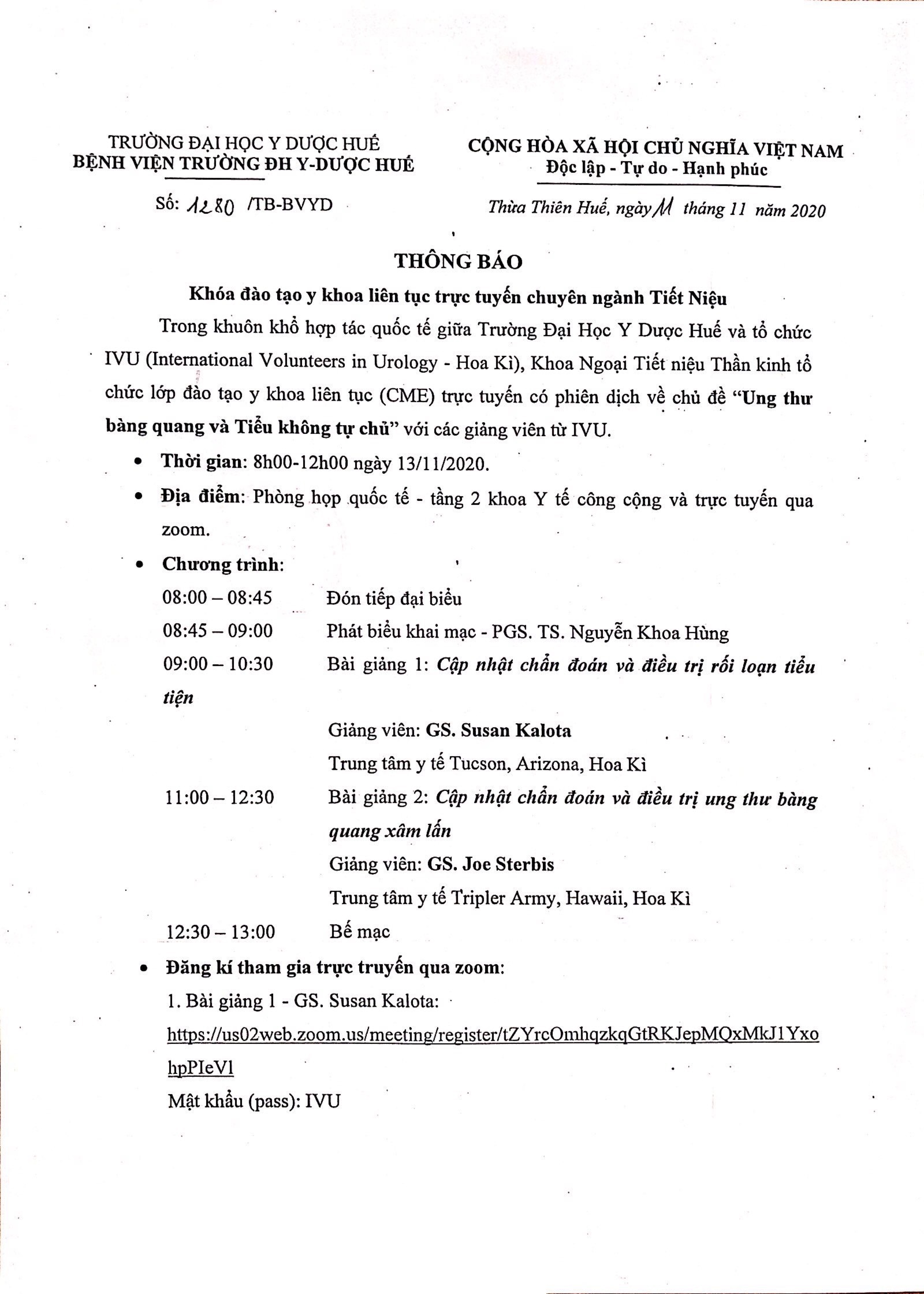 Lớp đào tạo y khoa liên tục (CME) trực tuyến có phiên dịch về chủ đề “Ung thư bàng quang và Tiểu không tự chủ”