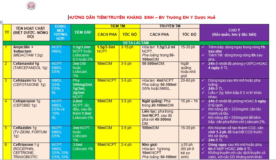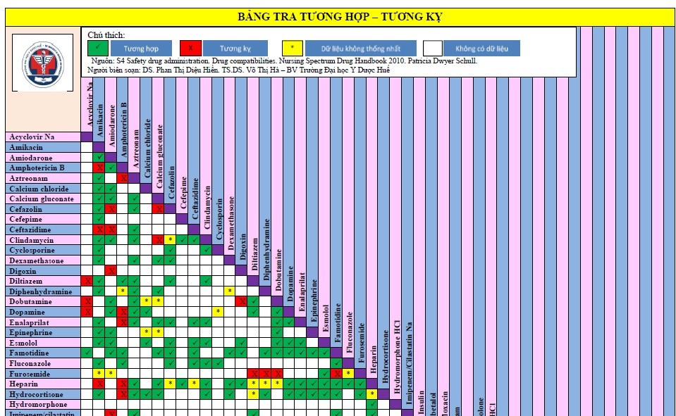 Đồng thời, các dược sĩ dược lâm sàng của bệnh viện đã xây dựng 02 tài liệu giúp tra cứu trên lâm sàng giành cho điều dưỡng gồm: “Bảng tra tương kỵ - tương hợp” và “Hướng dẫn tiêm/truyền kháng sinh”.
