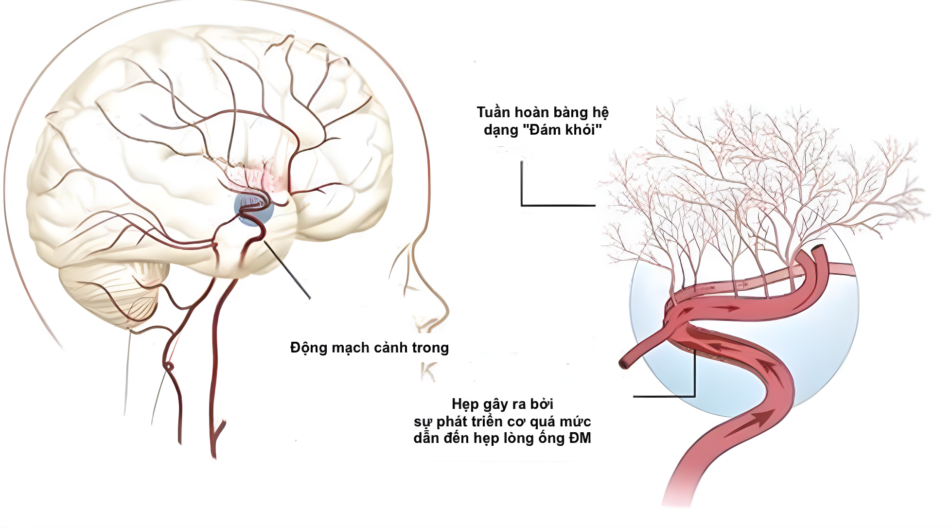 Bệnh Moyamoya là một bệnh lý mạch máu não hiếm gặp, đặc trưng bởi sự hẹp dần hoặc tắc nghẽn của các nhánh chính trong não, đặc biệt là động mạch cảnh trong và các nhánh của vòng Willis.